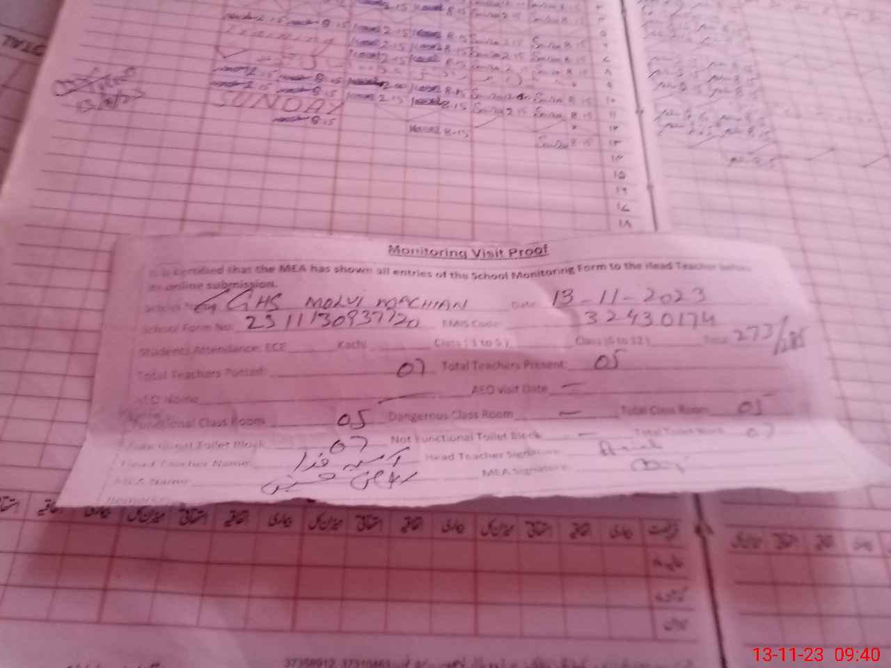 | EMIS Code: 32430174 | Name of School: GGHS MOLVI MACHIAN | |||
