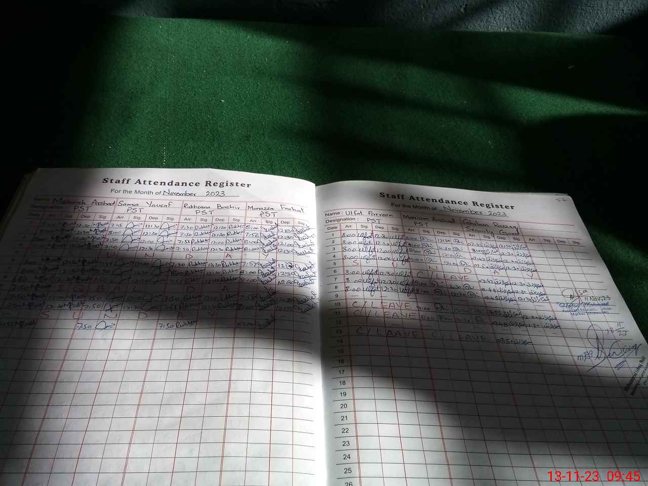 | CNIC | Full Name | Designation | R/C | Absence During Last Calender Month |