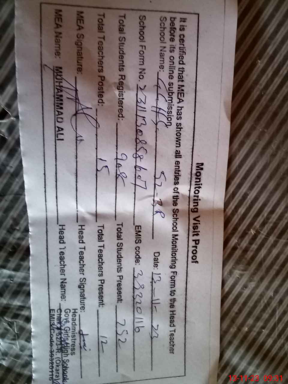 | EMIS Code: 39320116 | Name of School: GGHS 52/3-R | |||