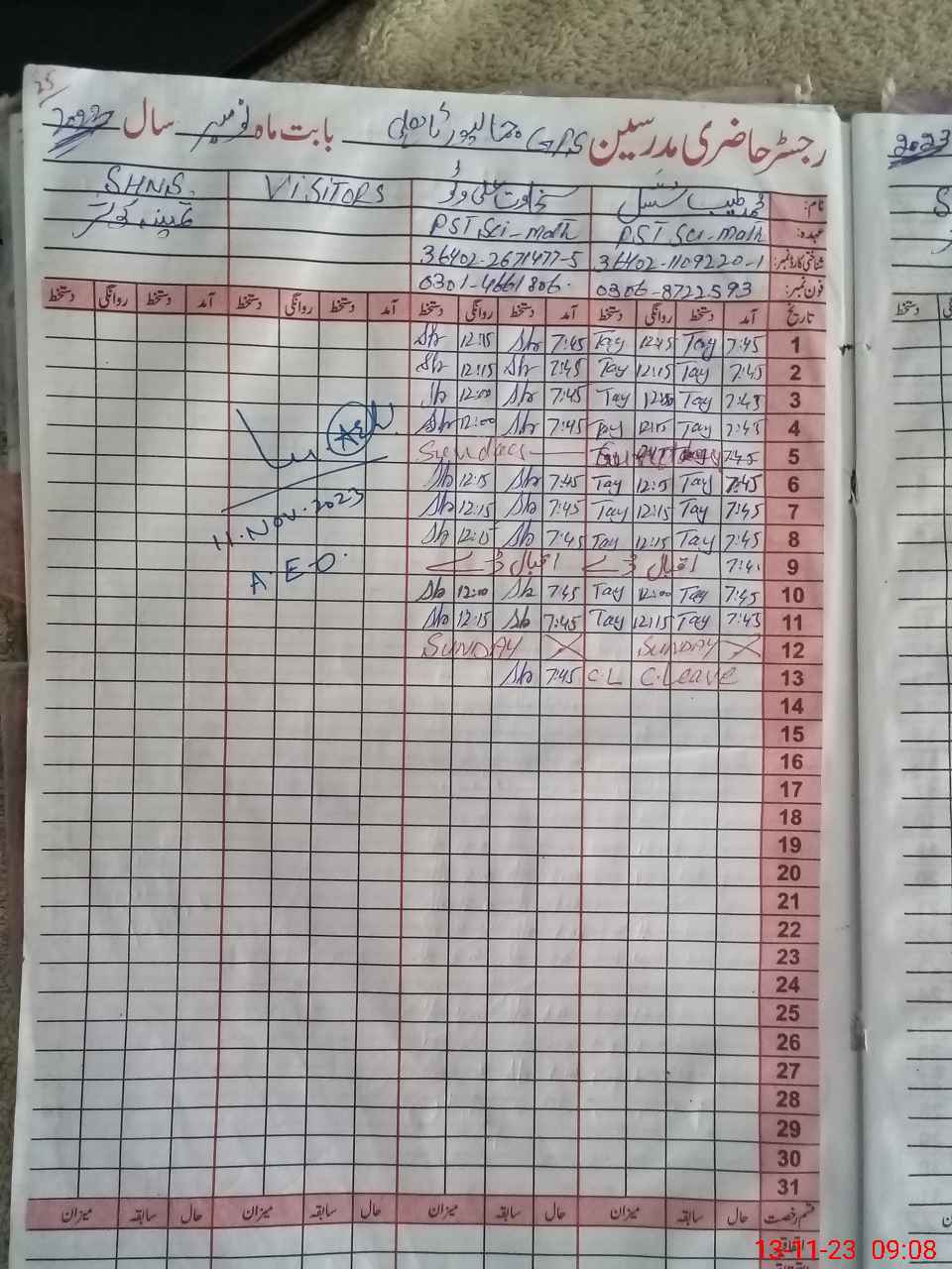 | Name: Mu**** Ta**** Designation: (School Headmaster's/Headmistress's) PST Phone/Cell Number: 03**** |