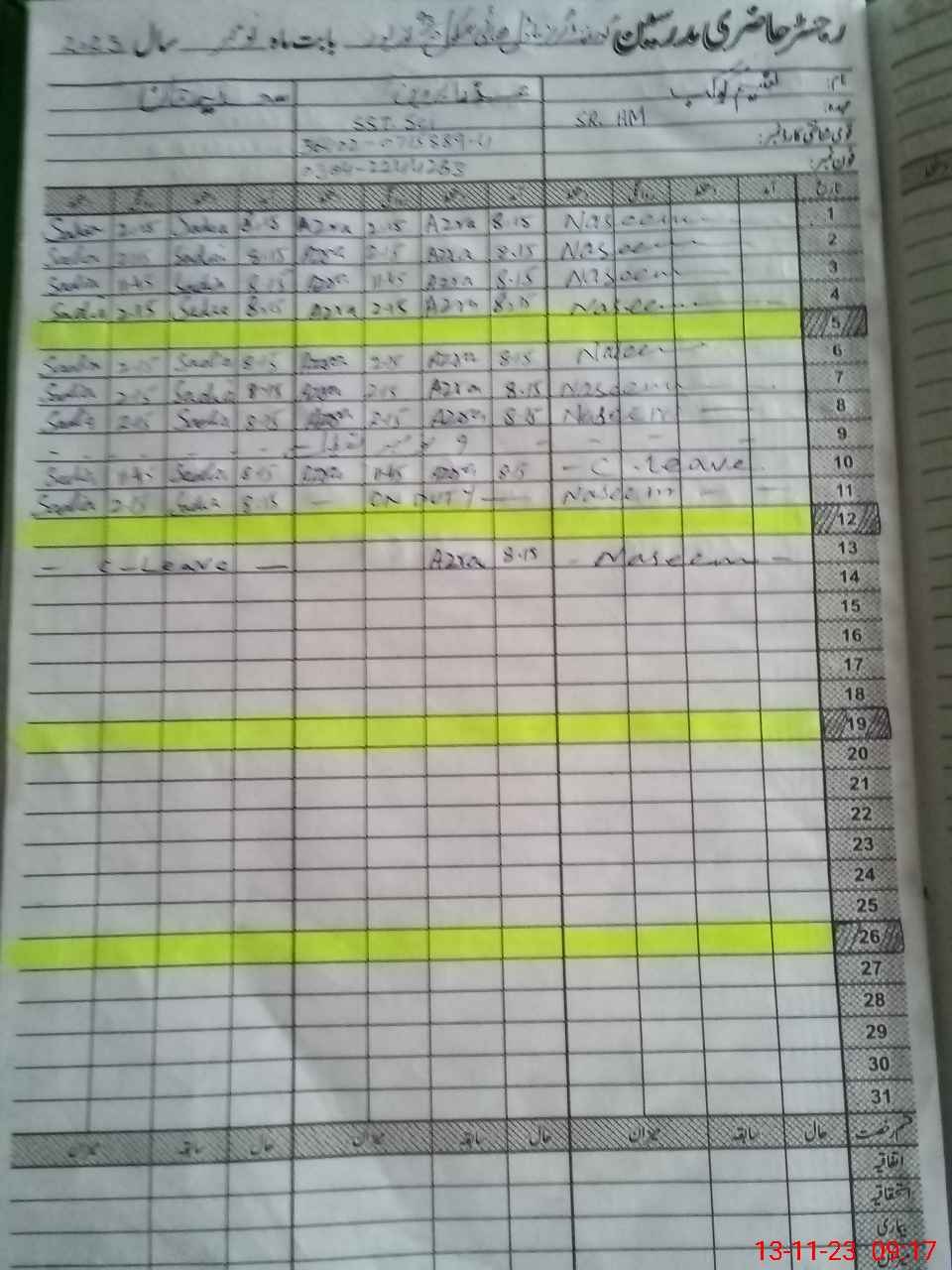| CNIC | Full Name | Designation | R/C | Absence During Last Calender Month |