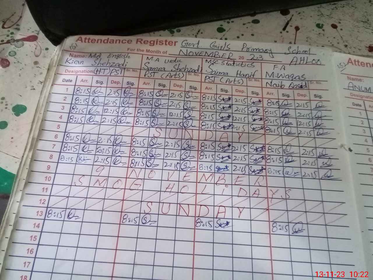 | CNIC | Full Name | Designation | R/C | Absence During Last Calender Month |