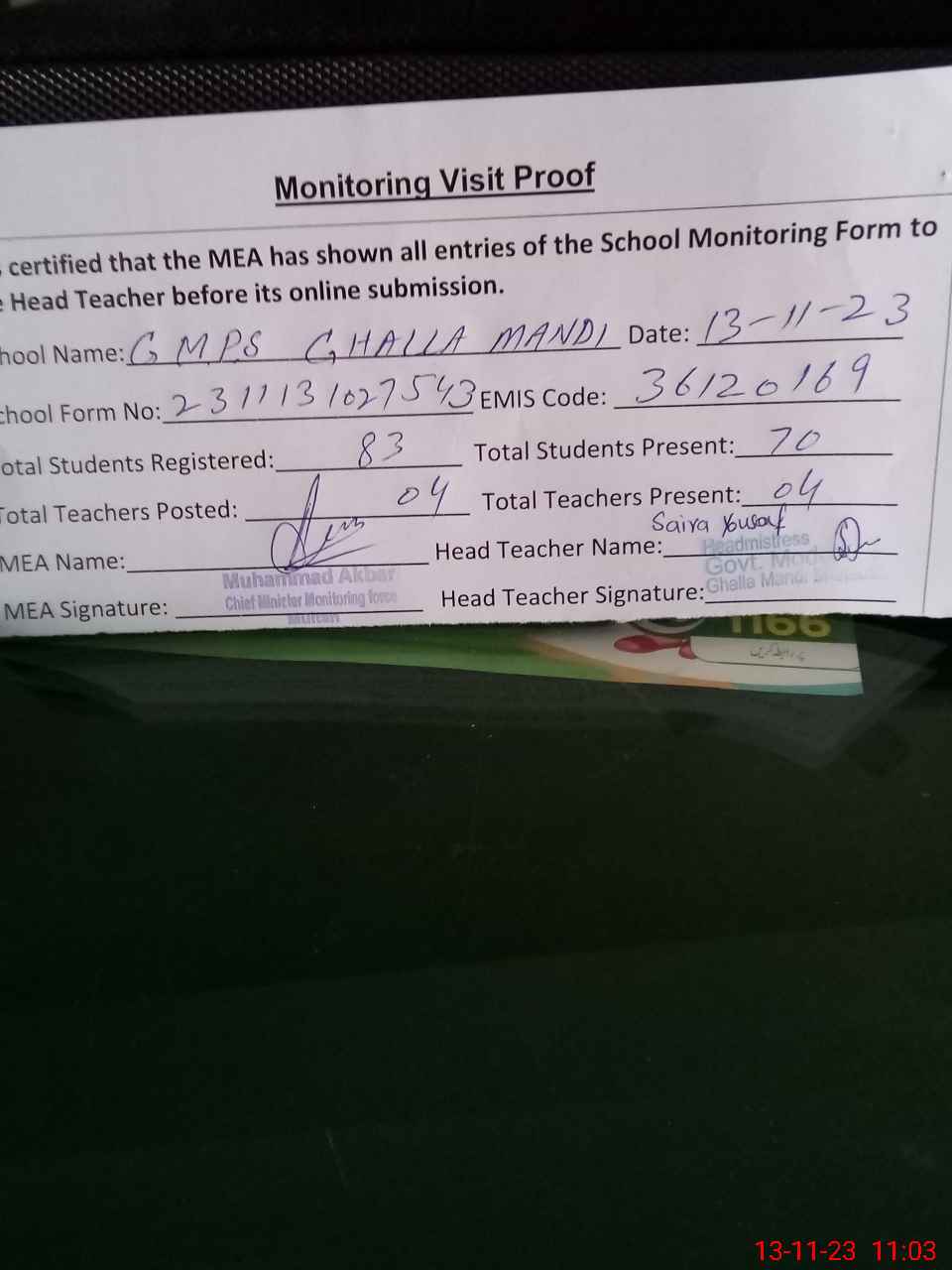 | EMIS Code: 36120169 | Name of School: GMPS GHALLA MANDI SHUJABAD | |||