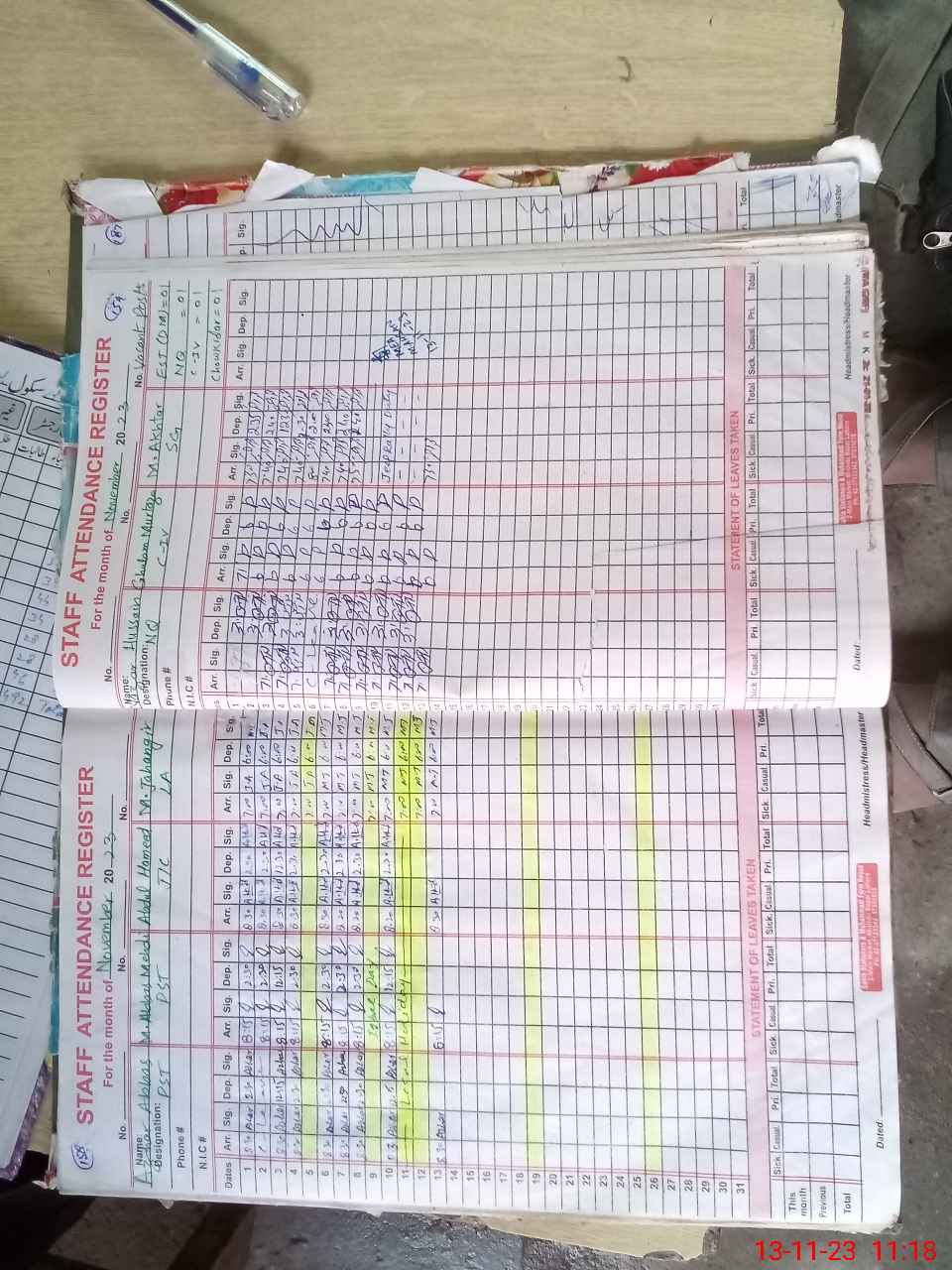 | CNIC | Full Name | Designation | R/C | Absence During Last Calender Month |