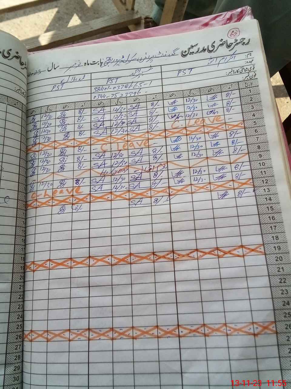 | Name: IK**** UL**** Designation: (School Headmaster's/Headmistress's) PST Phone/Cell Number: 03**** |