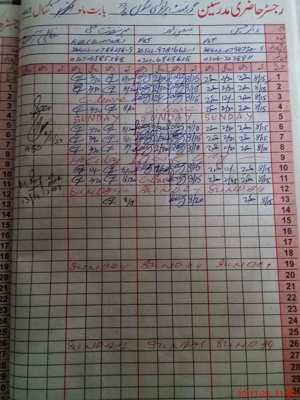 | Name: Fi**** Mu**** Designation: (School Headmaster's/Headmistress's) PST Phone/Cell Number: 03**** |
