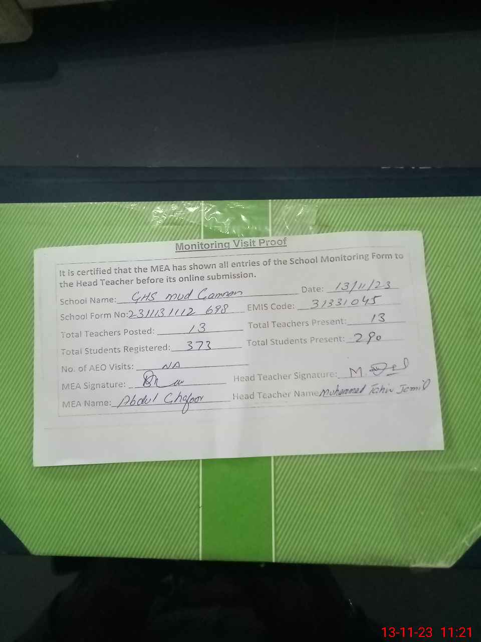 | EMIS Code: 31331045 | Name of School: GHS MADD GAMAN | |||