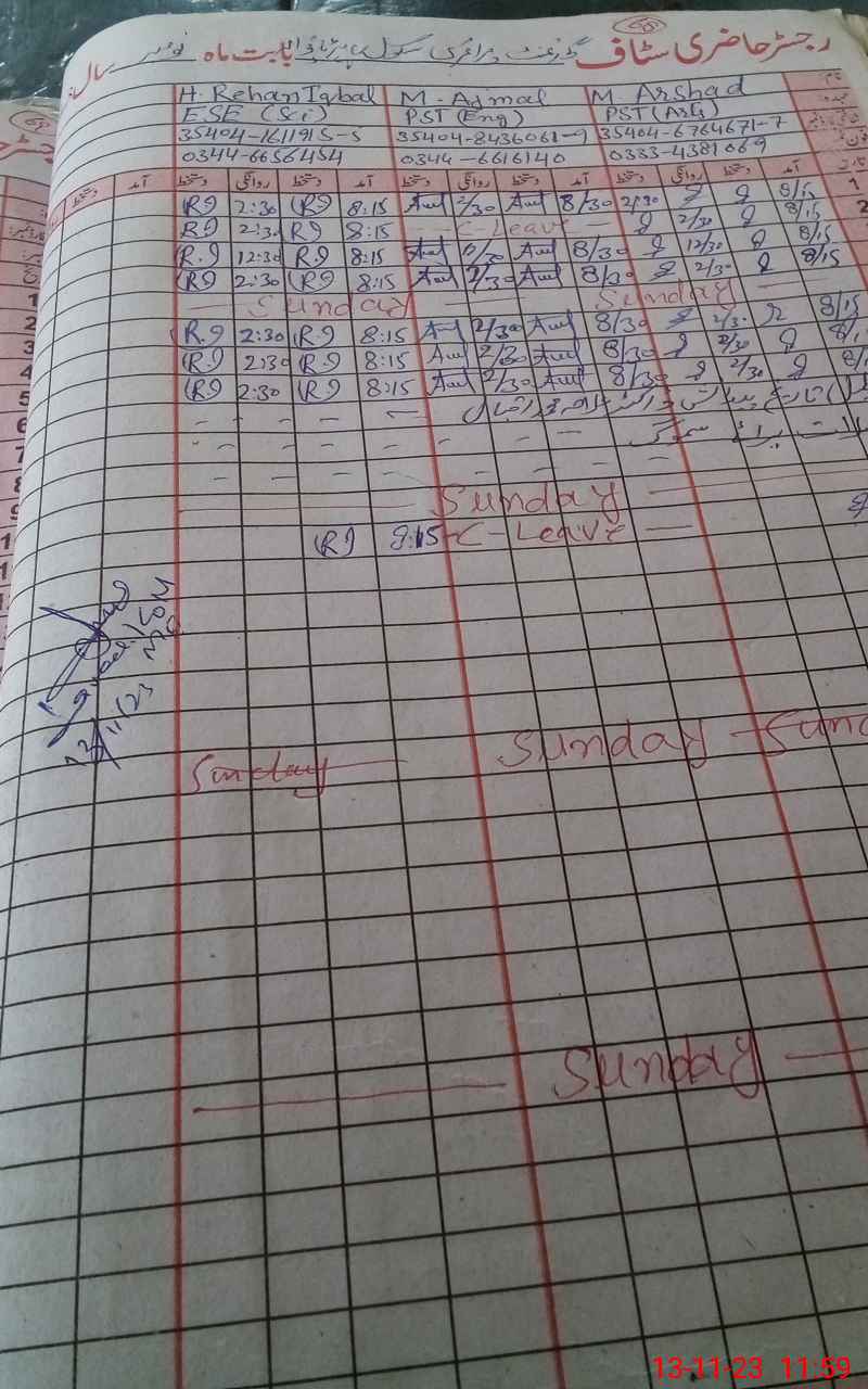 | Name: Ha**** Re**** Iq**** Designation: (School Headmaster's/Headmistress's) PST Phone/Cell Number: 03**** |