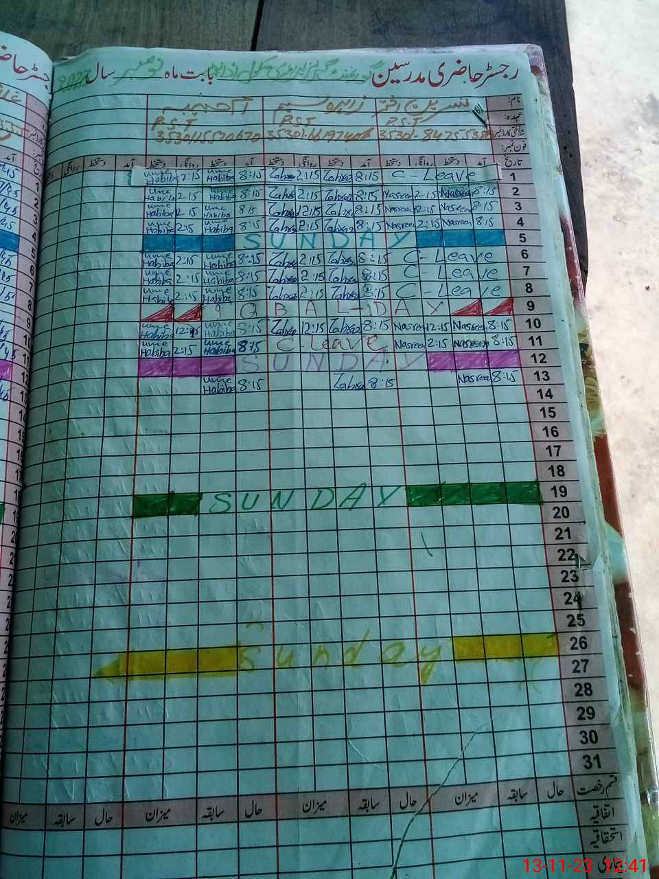 | CNIC | Full Name | Designation | R/C | Absence During Last Calender Month |