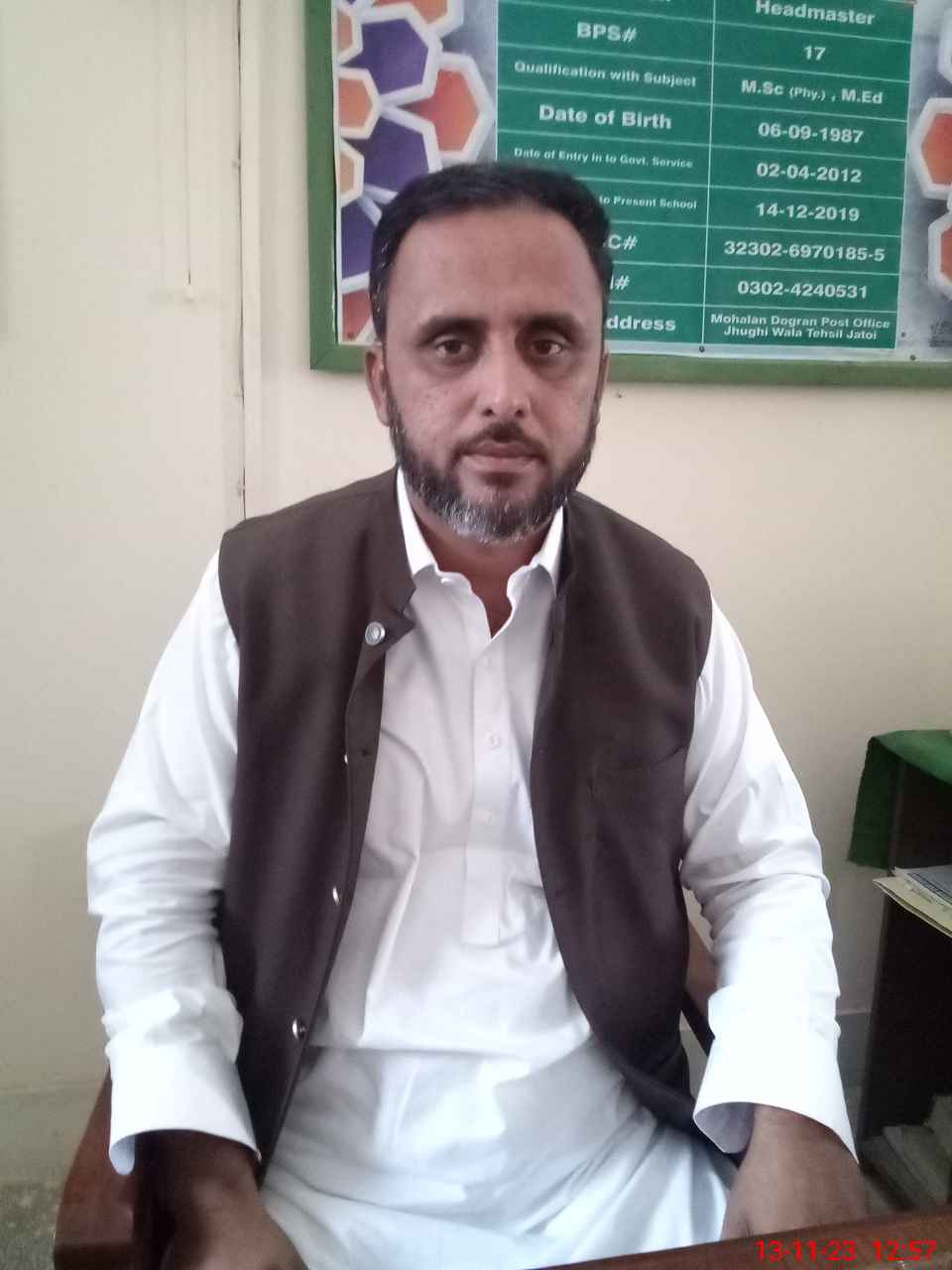 | Name: MU**** SH**** LI**** Designation: (School Headmaster's/Headmistress's) HM Phone/Cell Number: 03**** |