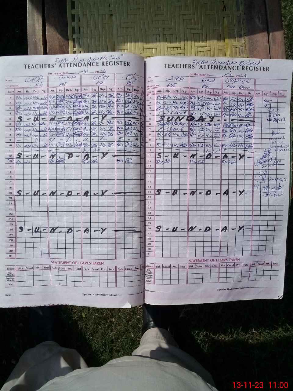 | CNIC | Full Name | Designation | R/C | Absence During Last Calender Month |