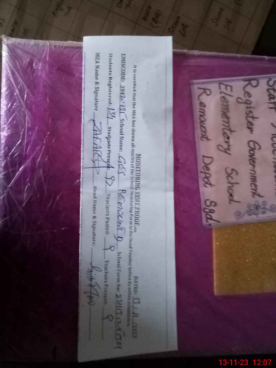 | Attendance Register | Head Teacher | MEA with School | Visit Proof |