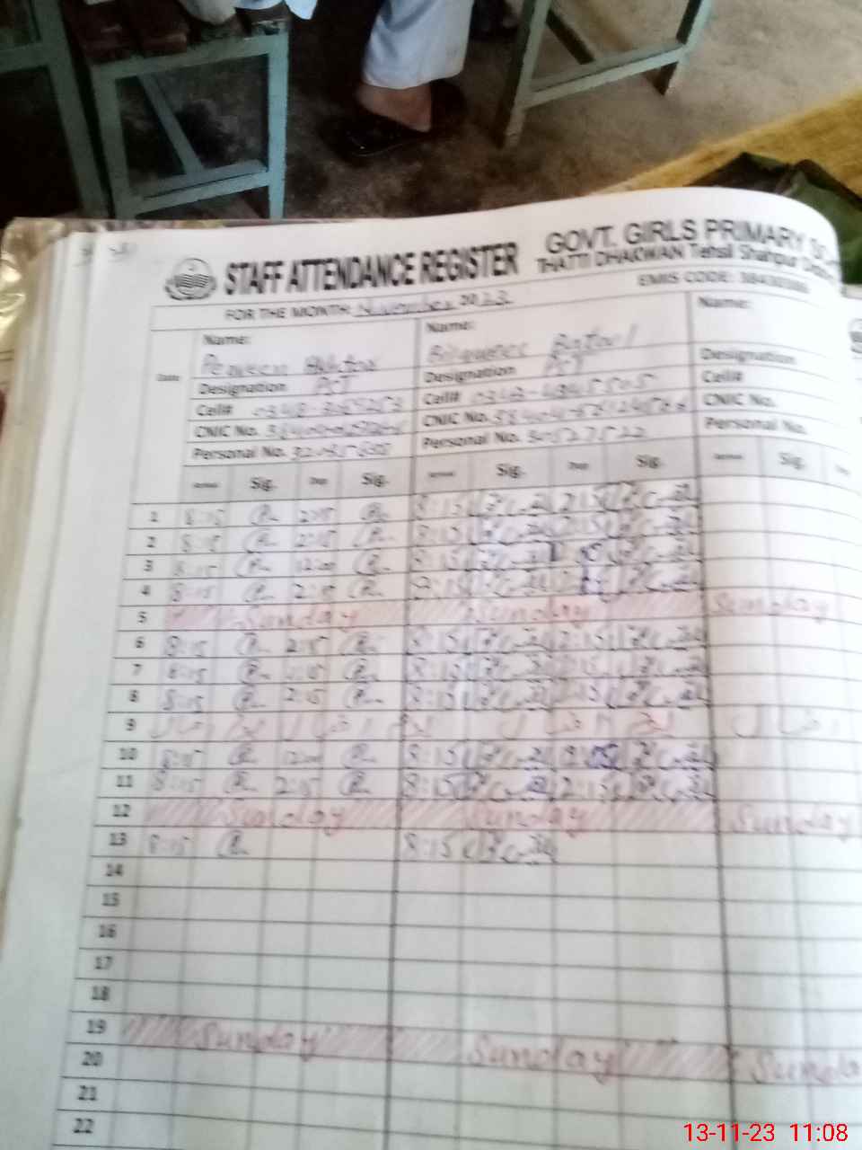 | Name: PA**** AK**** Designation: (School Headmaster's/Headmistress's) PST (Sc-Math) Phone/Cell Number: 03**** |