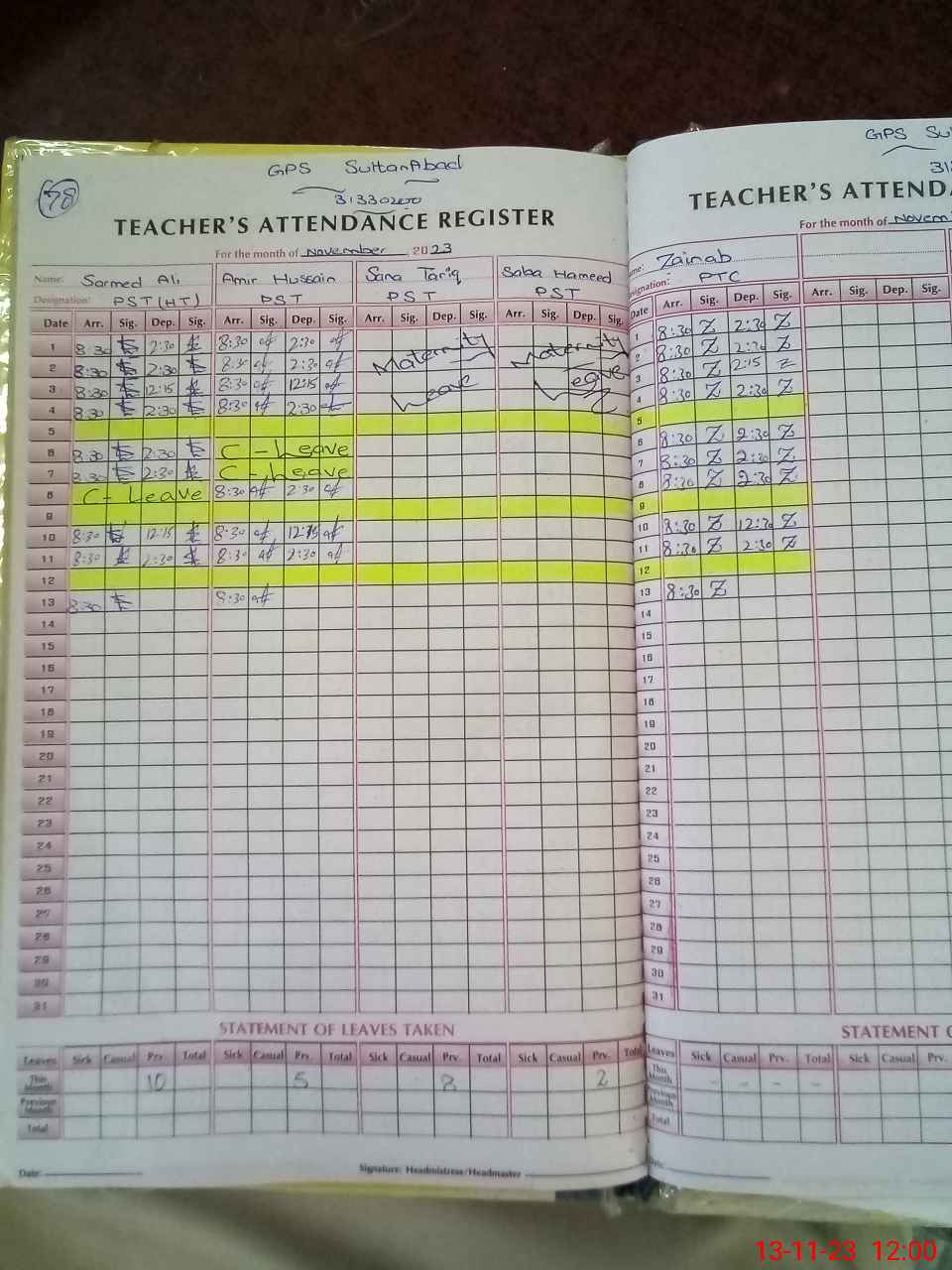 | 31**** | Sa**** Ta**** | 1 | 26 | 0 | 0 | 26 | 0 | 0 | 0 | 0 | 0 | Maternity | |