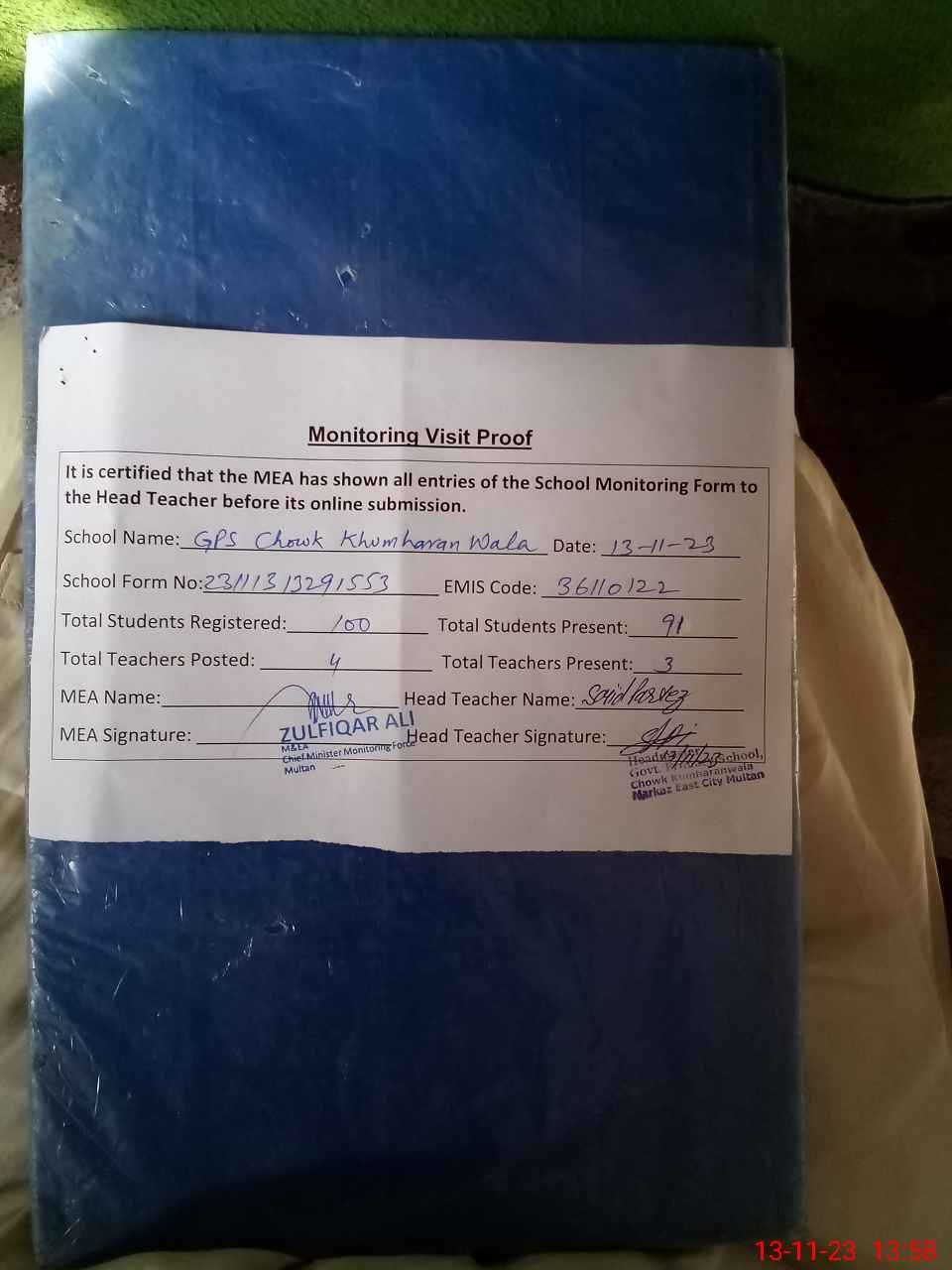 | EMIS Code: 36110122 | Name of School: GPS CHOWK KUMHARAN WALA | |||