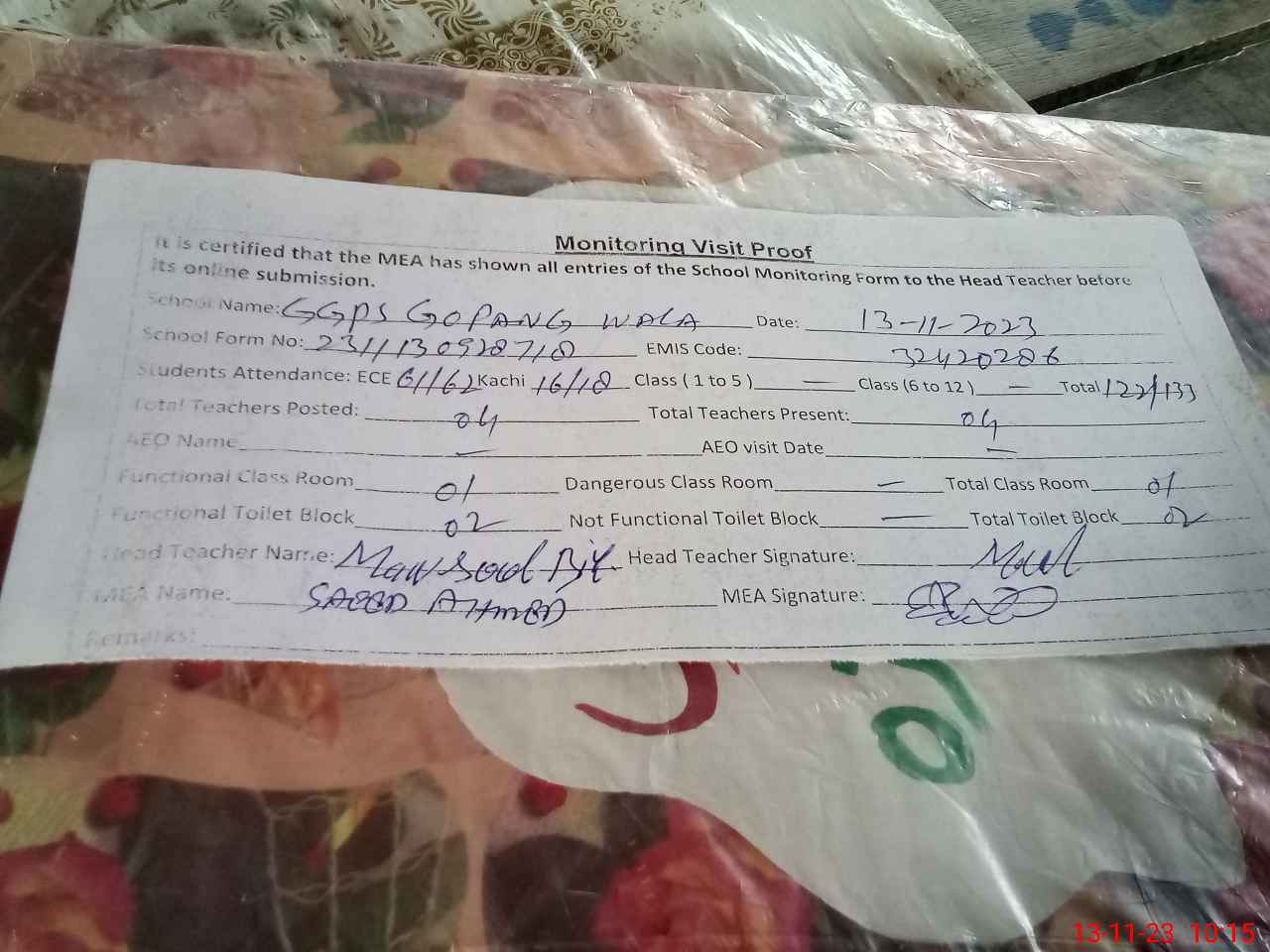 | EMIS Code: 32420286 | Name of School: GGPS GOPANG WALA | |||