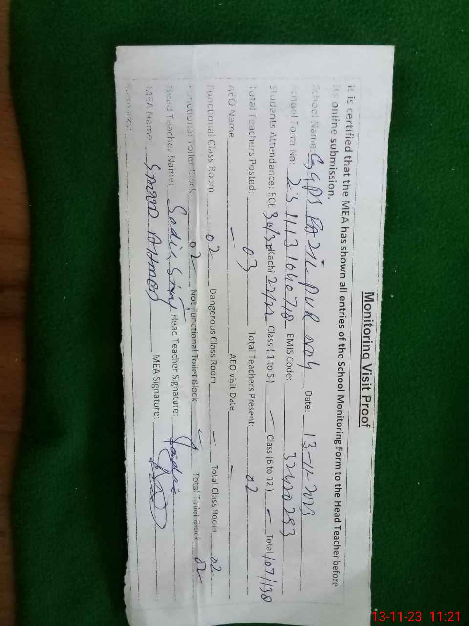 | Name: SA**** SI**** Designation: (School Headmaster's/Headmistress's) PST Phone/Cell Number: 03**** |