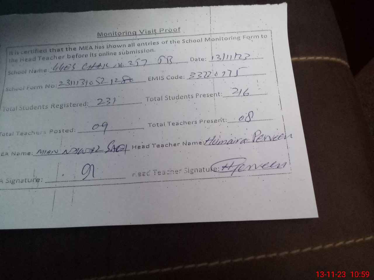 | EMIS Code: 33220175 | Name of School: GGES CHAK NO 257 JB | |||
