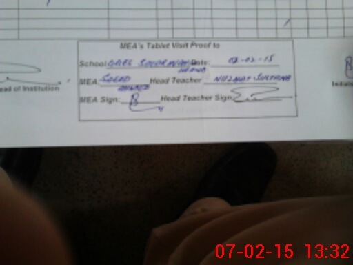 | Attendance Register | Head Teacher | MEA with School | Visit Proof |
