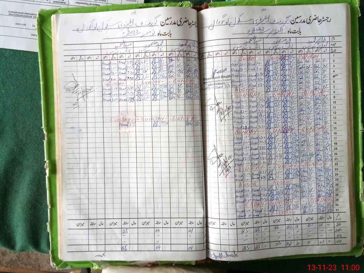 | CNIC | Full Name | Designation | R/C | Absence During Last Calender Month |