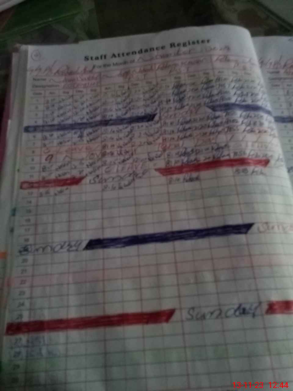 | CNIC | Full Name | Designation | R/C | Absence During Last Calender Month |