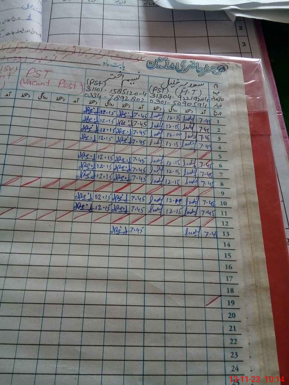 | Name: Sa**** Kh**** Designation: (School Headmaster's/Headmistress's) PST Phone/Cell Number: 03**** |