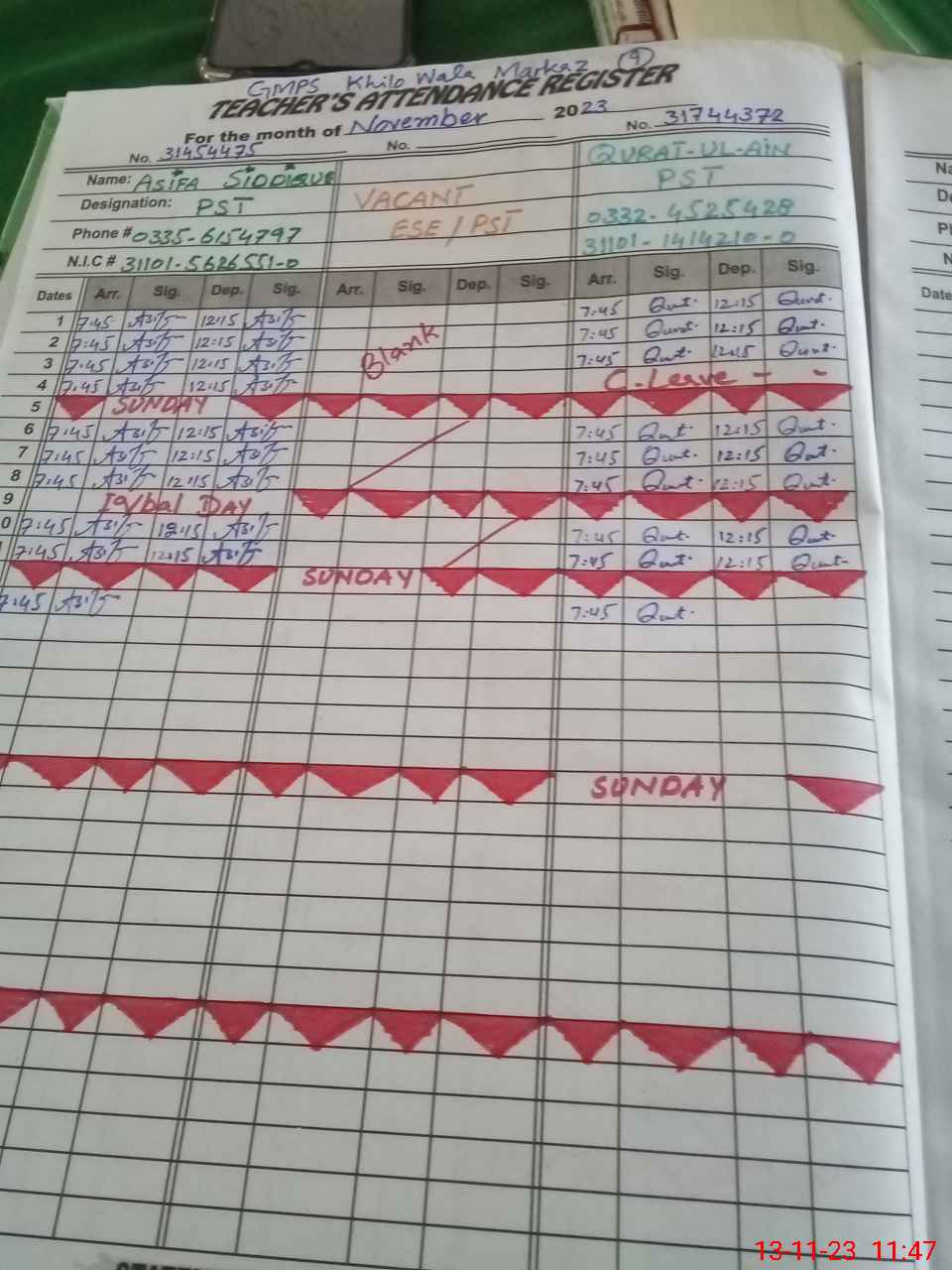 | Name: AS**** SI**** Designation: (School Headmaster's/Headmistress's) PST Phone/Cell Number: 03**** |