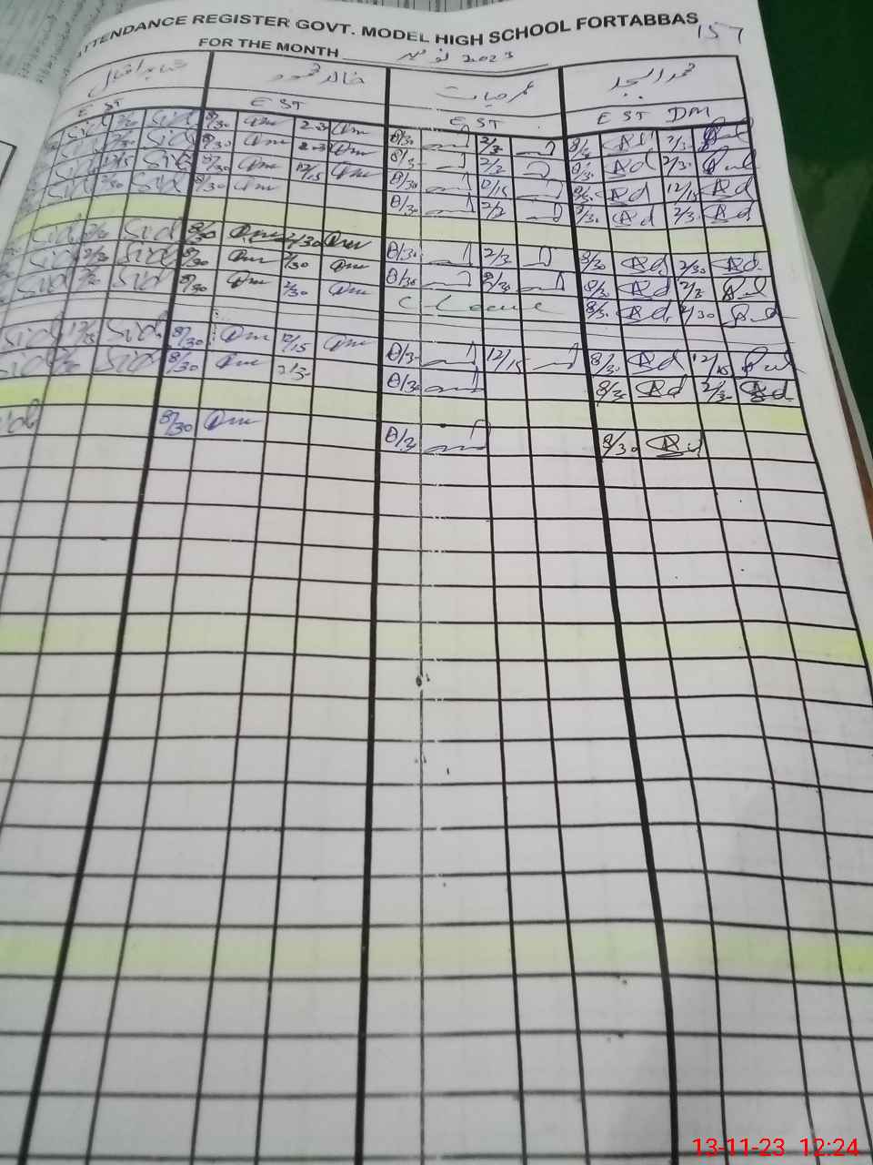 | CNIC | Full Name | Designation | R/C | Absence During Last Calender Month |