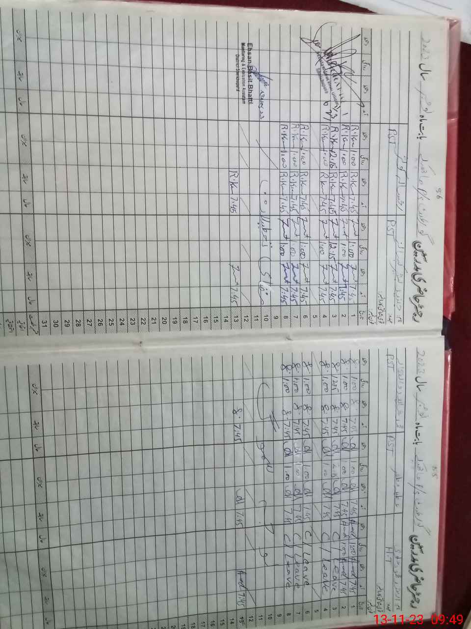| CNIC | Full Name | Designation | R/C | Absence During Last Calender Month |
