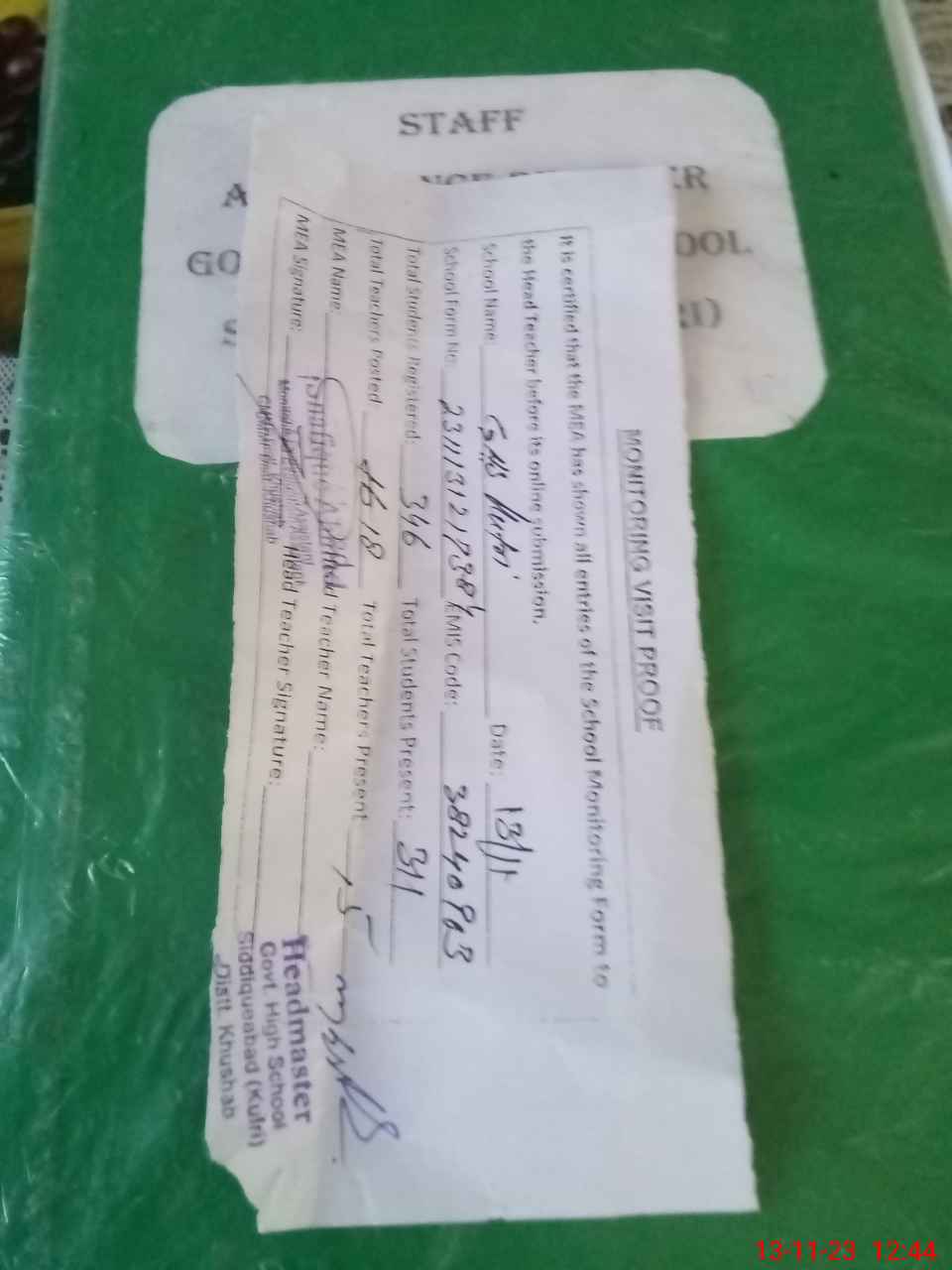 | Attendance Register | Head Teacher | MEA with School | Visit Proof |