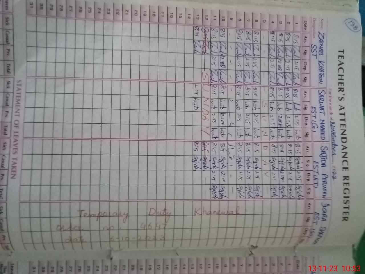 | Name: Za**** Kh**** Designation: (School Headmaster's/Headmistress's) SST(G) Phone/Cell Number: 03**** |