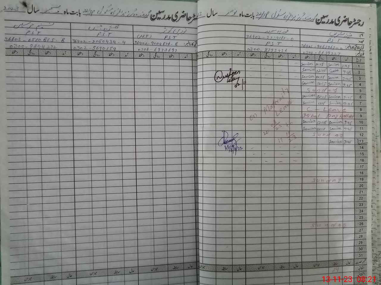 | CNIC | Full Name | Designation | R/C | Absence During Last Calender Month |