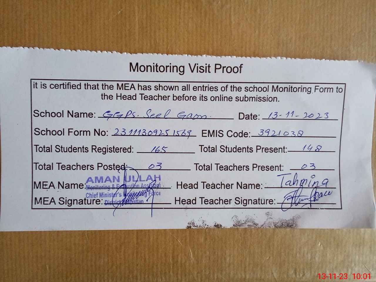 | EMIS Code: 39210338 | Name of School: GGPS SEEL GAON | |||