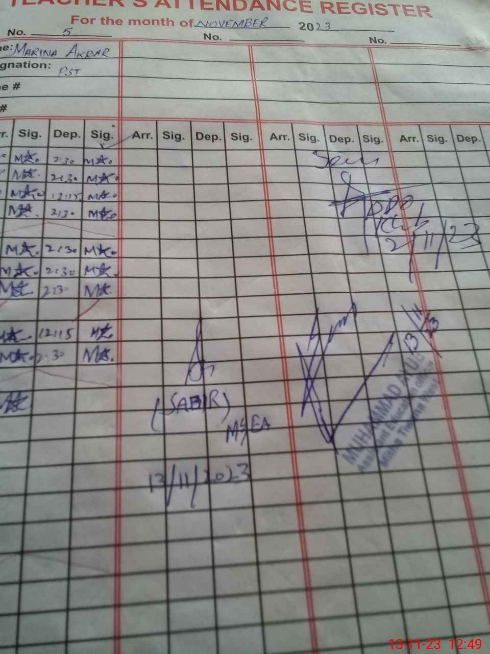 | Attendance Register | Head Teacher | MEA with School | Visit Proof |