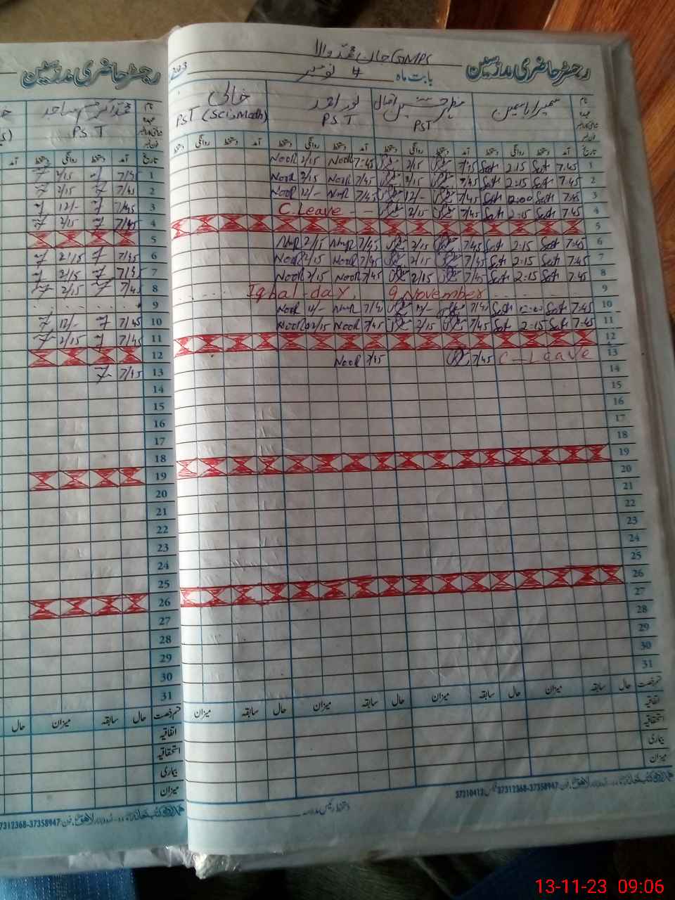 | CNIC | Full Name | Designation | R/C | Absence During Last Calender Month |