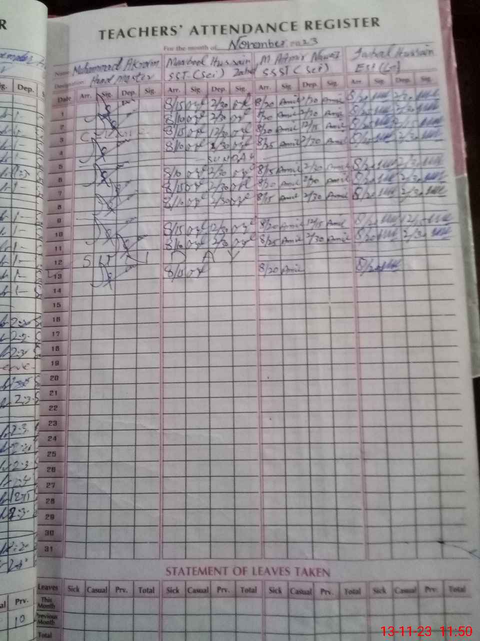 | CNIC | Full Name | Designation | R/C | Absence During Last Calender Month |