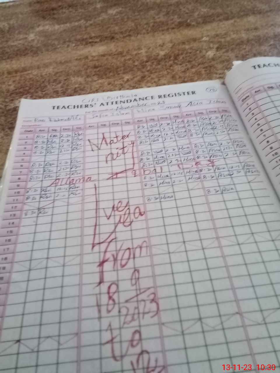 | Name: Re**** Al**** Designation: (School Headmaster's/Headmistress's) PST Phone/Cell Number: 03**** |