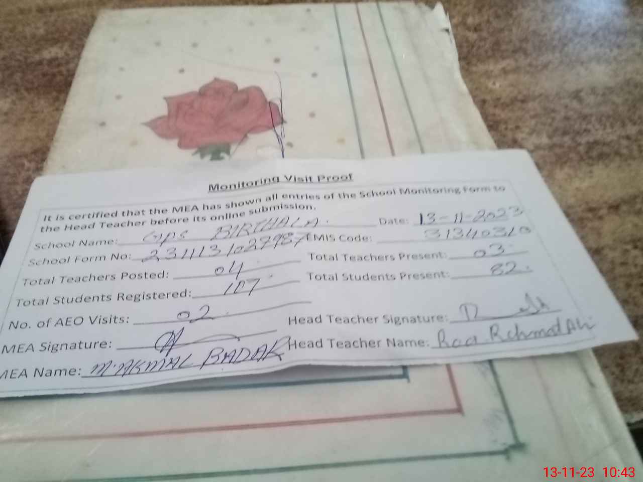 | EMIS Code: 31340310 | Name of School: GPS BIRTHALA | |||