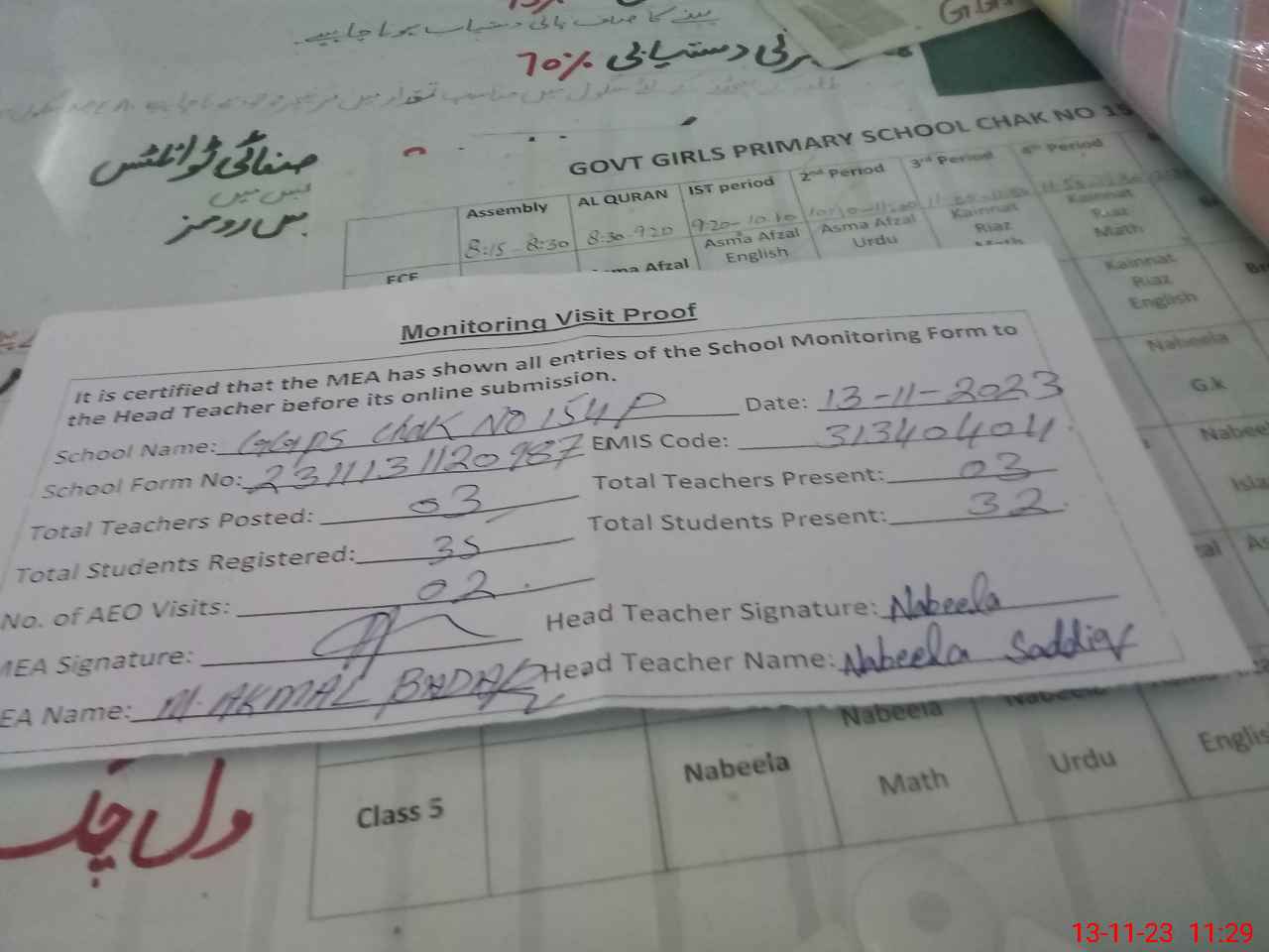 | EMIS Code: 31340404 | Name of School: GGPS CHAK NO.154/P | |||