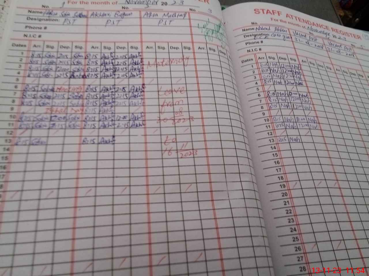 | CNIC | Full Name | Designation | R/C | Absence During Last Calender Month |