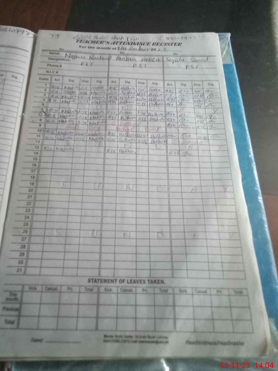 | Name: Na**** Ra**** Designation: (School Headmaster's/Headmistress's) PST Phone/Cell Number: 03**** |