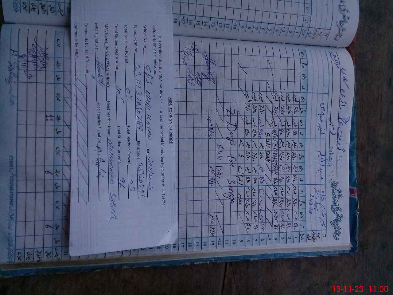 | Attendance Register | Head Teacher | MEA with School | Visit Proof |