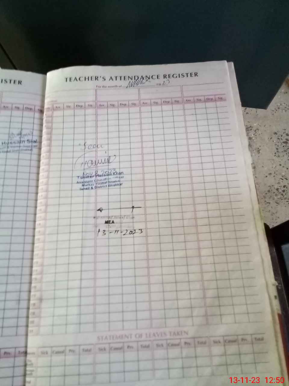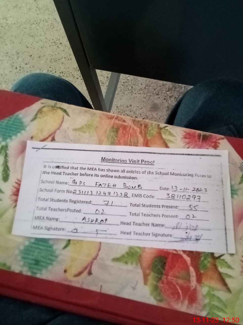 | Attendance Register | Head Teacher | MEA with School | Visit Proof |
