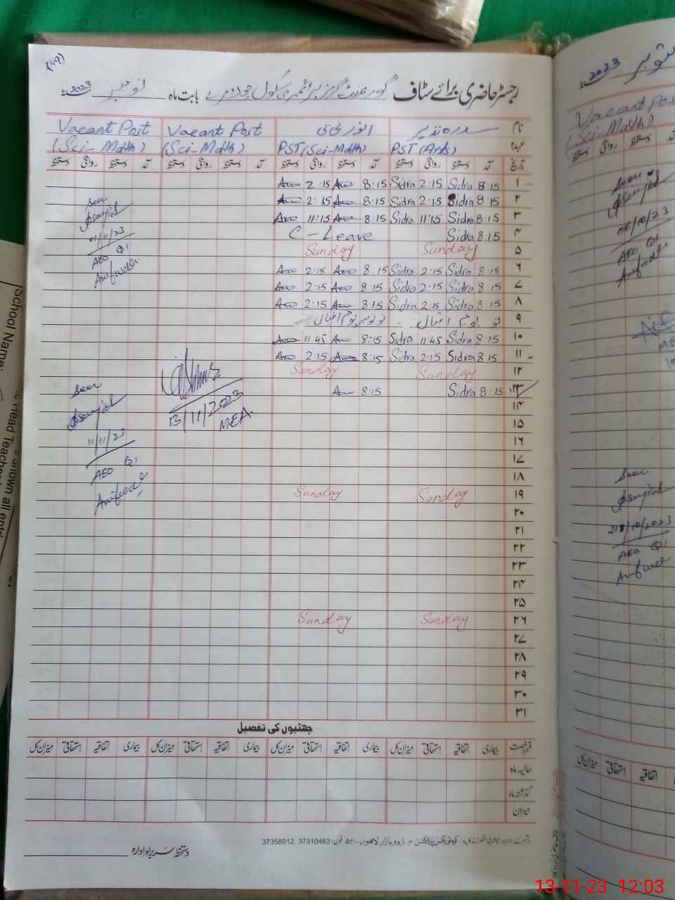 | Name: SI**** NA**** Designation: (School Headmaster's/Headmistress's) PST Phone/Cell Number: 03**** |
