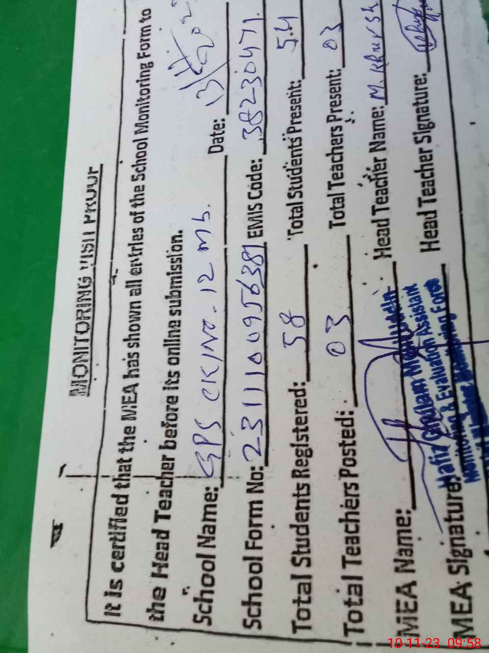 | EMIS Code: 38230471 | Name of School: GPS CHAK NO. 12 MB | |||