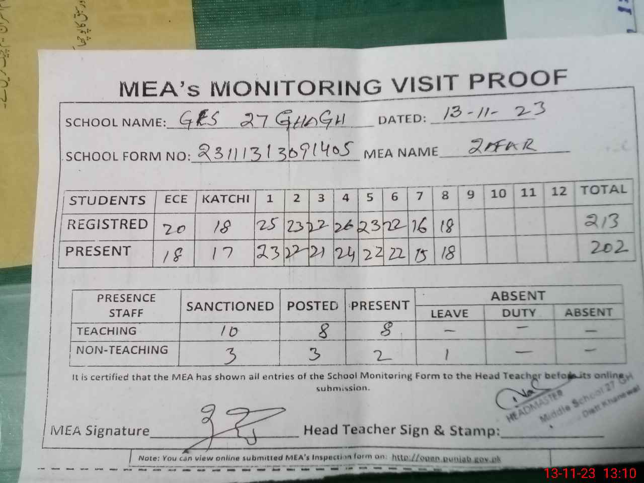 | EMIS Code: 36410079 | Name of School: GES 27 GHAGH, P/O ADDA 25 PUL, ABDUL HAKIM | |||