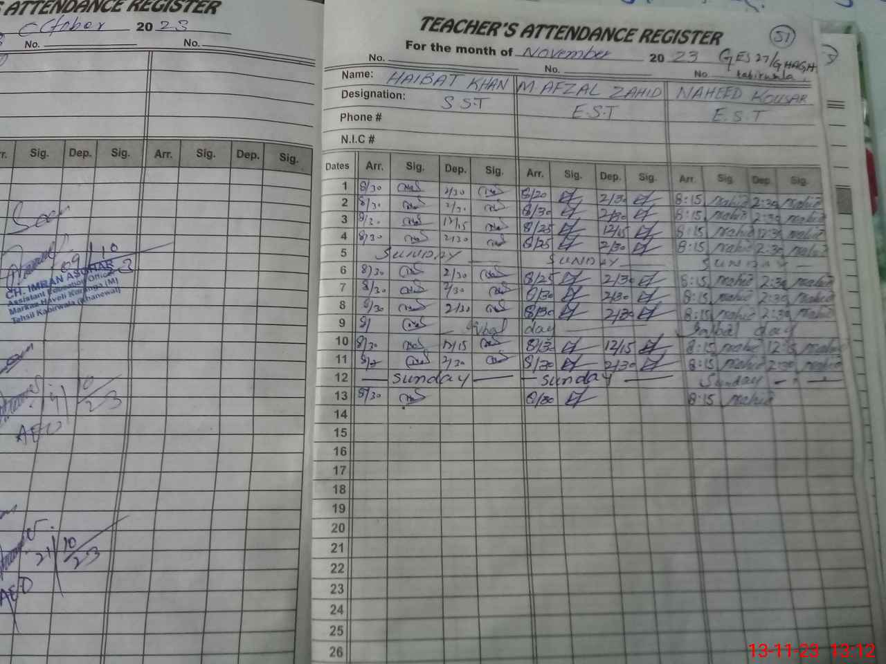 | Name: Sa**** Ha**** Designation: (School Headmaster's/Headmistress's) SST Phone/Cell Number: 03**** |