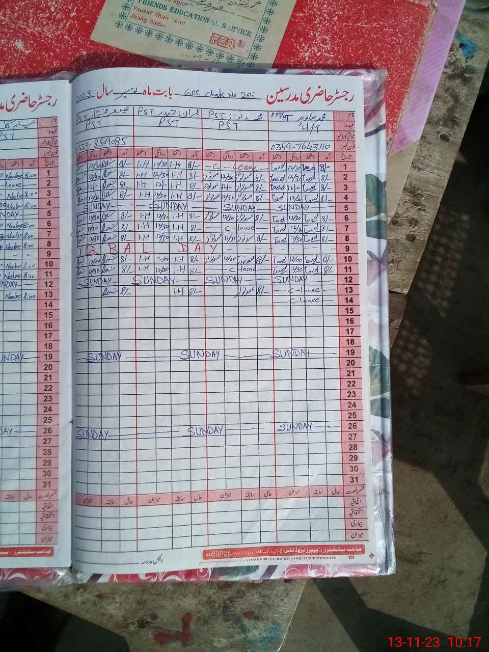 | Name: IJ**** HU**** Designation: (School Headmaster's/Headmistress's) PSf Phone/Cell Number: 03**** |