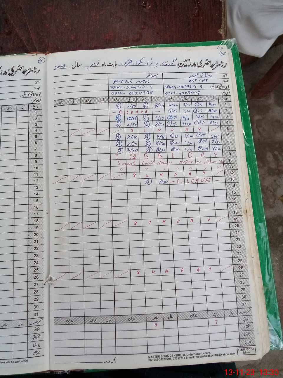 | CNIC | Full Name | Designation | R/C | Absence During Last Calender Month |