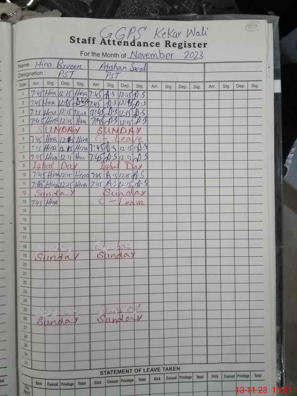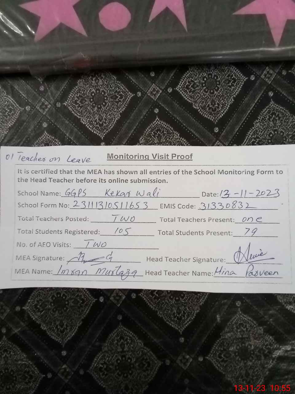 | EMIS Code: 31330832 | Name of School: GGPS KEKAR WALI | |||